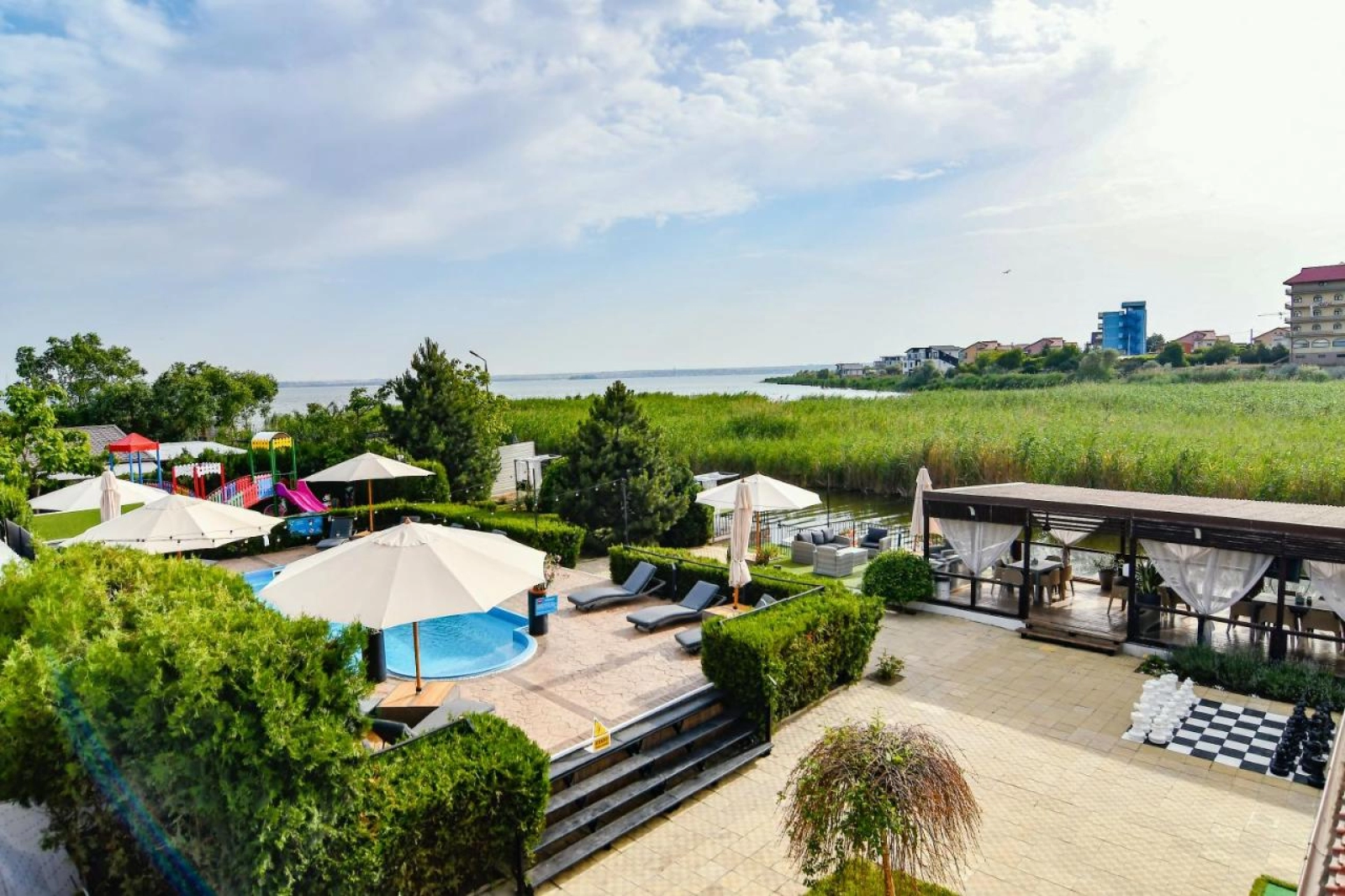 ALFA va ofera posibilitatea sa fiti alaturi de copiii dumneavoastra intr-un loc de joaca, sa va plimbati romantic cu hidrobicicleta pe lac, relaxati la pescuit, sa stati la soare pe piscina si de ce nu, sa va pregatiti un barbeque pentru grupul de prieteni . Aici puteti beneficia de bucatarie pentru a pregati bebelusilor preparatele speciale. Locul de relaxare Feng Shui cu privelistea deosebita a lacului si stufarisului dar si in susurul apei vaselor romane din preajma, la asfintitul soarelui sunt surse inepuizabile de energie, atat de necesare dupa un an de munca .