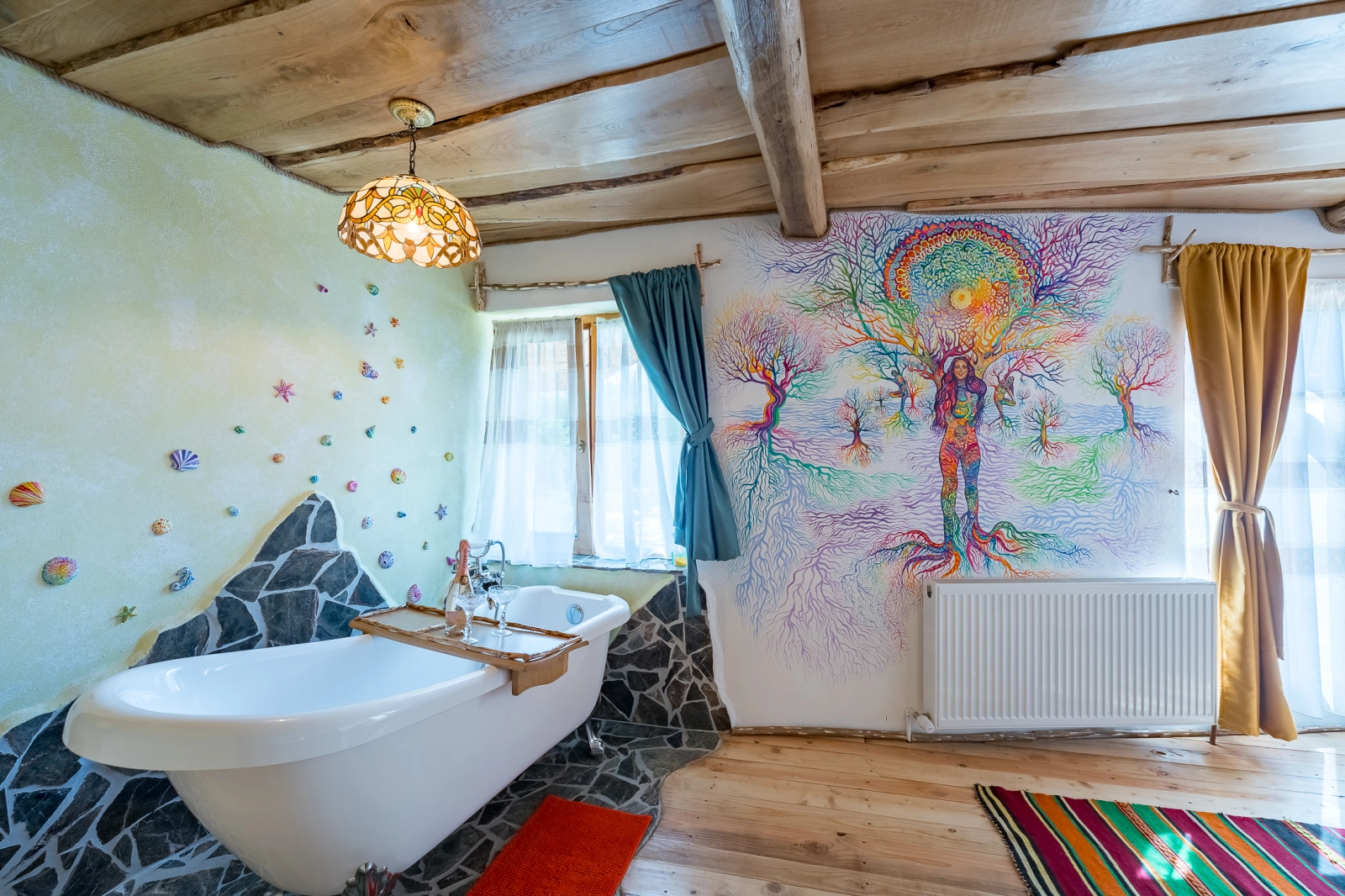 Euphoria este o cameră dublă dotată cu cadă în cameră. Are baie proprie, zonă de luat masa și o terasă exterioară ce poate fi folosită pentru servirea mesei.