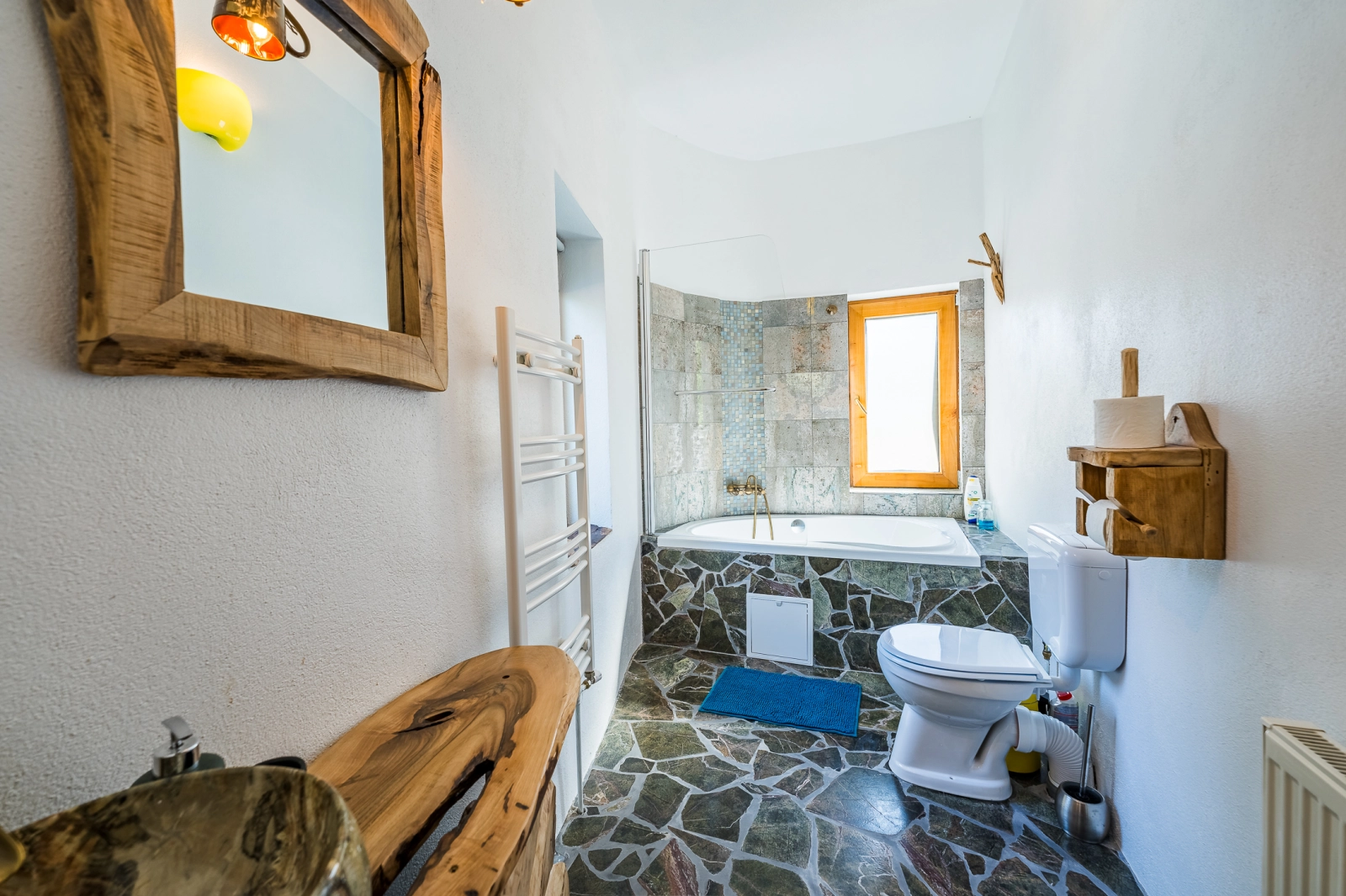 Casa Albastră are o capacitate de 6 persoane, 2 băi și o bucătărie complet utilată. Dispune de acces la grătar, foișor și zonă de luat masa.